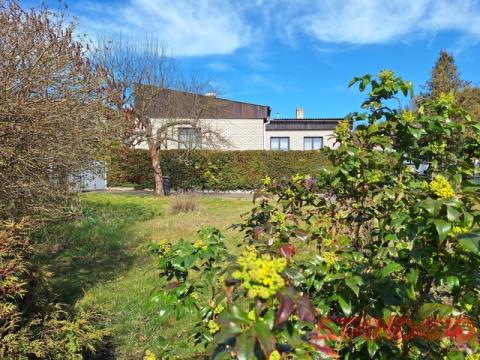Pozemek má celkovou výměru 892 m² – zastavěná plocha a nádvoří 591 m², navazující udržovaná zahrada 301 m² se vzrostlými stromy a okrasnými dřevinami. K domu náleží samostatná garáž s montážní jámou, kolna a zahradní domek. V prostorném, částečně zastřešeném, průjezdu mezi domem a garáží lze pohodlně parkovat 3 osobní vozy, další vjezd a možnost parkování je ze strany zahrady díky druhým vratům.