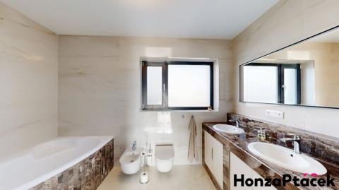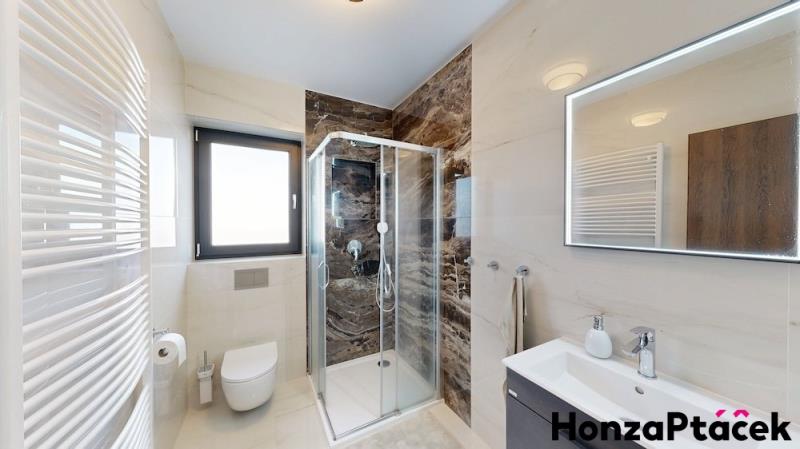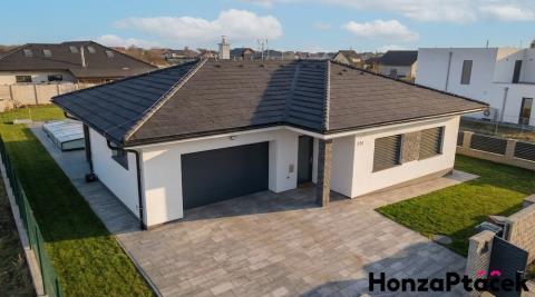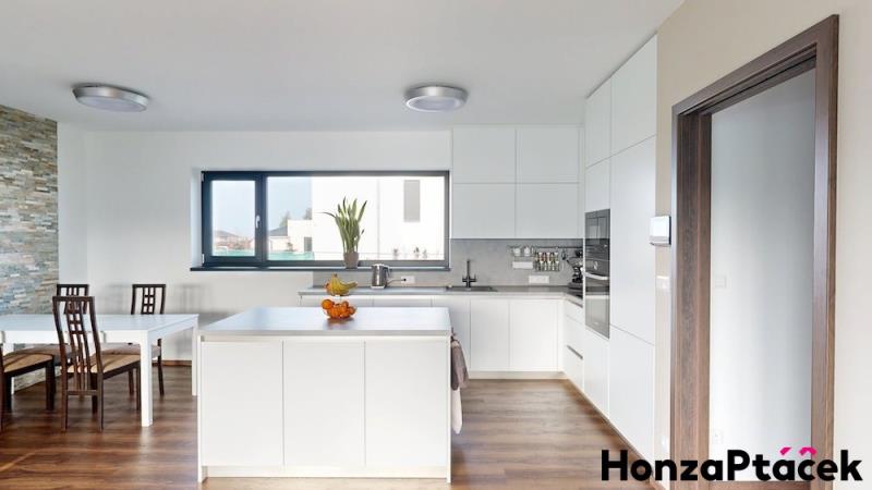 V klidné vilové čtvrti obce Křenice, jen pár minut od Prahy, se nachází novostavba rodinného domu, která zaujme promyšleným řešením, úsporným provozem i příjemnou atmosférou. Dům o dispozici 6+kk a celkové užitné ploše 190 m² (včetně garáže) byl zkolaudován v roce 2023 a je situován na pozemku o výměře 989 m². V interiéru se snoubí funkčnost a čisté linie – centrálním prvkem je prostorný obývací pokoj propojený s terasou a zahradou. Kuchyňská část je vybavena moderními vestavnými spotřebiči a nabízí dostatek prostoru pro rodinné stolování i vaření. Dům je vytápěn podlahovým topením napojeným na plynový kondenzační kotel, přičemž je připraven i na instalaci tepelného čerpadla a krbu. Okna s trojskly, kvalitní zateplení a celkové konstrukční řešení zajišťují nízkou energetickou náročnost (třída C – úsporná). V roce 2025 byl na zahradě vybudován krytý bazén se slanou hořčíkovou vodou a přípravou na tepelné čerpadlo. Terasa o ploše 80 m² poskytuje příjemné zázemí pro klidné chvíle venku i společenská setkání. Pozemek je oplocen, s vjezdovou branou ovládanou na dálku nebo přes mobilní aplikaci. Příjezd je po obecní asfaltové komunikaci. Dům je napojen na všechny inženýrské sítě, doplněné o vlastní vrtanou studnu a retenční nádrž. Užitnou plochu doplňuje garáž o výměře 34 m² a další parkovací místa jsou k dispozici na pozemku. Lokalita nabízí nejen rychlou dostupnost do Prahy (MHD, vlak), ale i blízkost školky, školy, obchodů a přírodních tras v okolí. Křenice tak spojují výhody městské dostupnosti s klidem a soukromím rodinného bydlení. Máte zájem o plán domu? Najdete ho na mých stránkách.