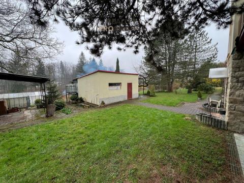 K domu patří i velká zahrada, na které se nachází zděné úložiště na nářadí a sekačky s zastřešeným parkovacím místem pro karavan. Je tady zděná budova, ve které vznikl záměr vybudovat další obytnou jednotku, sloužící jako chata. U této chaty se nachází posezení s krbem a samozavlažovací skleník, který je vykopán 1,5m pod povrchem. Níže v zahradní části se nachází malý zabudovaný bazén, vlastní rybník a dřevěný domeček na kuřích nožkách pro děti se zavedenou elektřinou a Wifi.