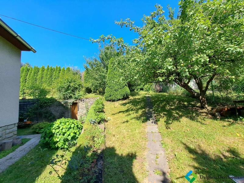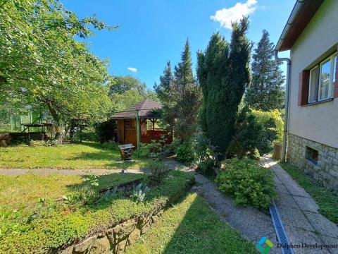 Je zachován optimální poměr volných travnatých ploch vůči výsadbám. Na pozemku je postavena zahradní pergola, zahradní zděný domek, který sloužil jako kurník s oplocenou předzahrádkou.