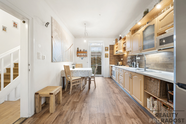 Prodej rodinného domu se dvěma bytovými jednotkami – Kuřim Ve výhradním zastoupení nabízíme k prodeji rodinný dům s pozemkem 656 m2 v žádané a klidné lokalitě města Kuřim, v docházkové vzdálenosti od centra. Dům prošel v roce 2008 citlivou rekonstrukcí, která zahrnovala půdní nadstavbu a kompletní výměnu elektroinstalace, rozvodů vody, odpadů a topení. Při rekonstrukci byly zachovány vybrané původní prvky, díky nimž si dům uchoval svůj jedinečný charakter a atmosféru. Nemovitost je v současnosti funkčně rozdělena na dvě samostatné bytové jednotky, každá s vlastním vstupem. Jednoduchou úpravou je možné dům znovu propojit a užívat jako jeden celek. Dispozice: • 1. bytová jednotka: vstupní hala, kuchyně, obývací pokoj, ložnice, pracovna, koupelna, samostatné WC, sklad • 2. bytová jednotka: kuchyně, ložnice, koupelna s WC Dům je částečně podsklepen. Velkou předností je rovinatý pozemek se zahradou o celkové výměře 656 m2, která poskytuje dostatek soukromí a prostoru pro relaxaci. V podkroví je navíc možnost vybudování minimálně dvou dalších pokojů – jsou zde již připraveny rozvody vody, elektřiny i topení. Lokalita nabízí kompletní občanskou vybavenost v bezprostřední blízkosti – škola, školka, pošta, úřady, vlakové i autobusové nádraží. Klidná původní zástavba zajišťuje příjemné bydlení s výbornou dostupností všech služeb. Tato nemovitost je ideální volbou jak pro vícegenerační bydlení, tak i jako investiční příležitost. Doporučujeme osobní prohlídku.