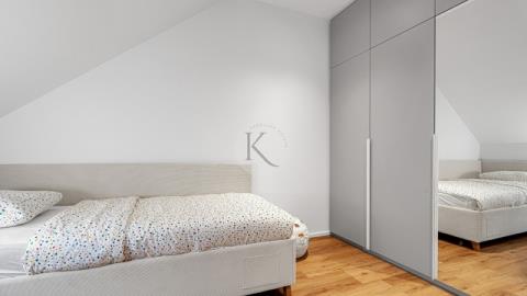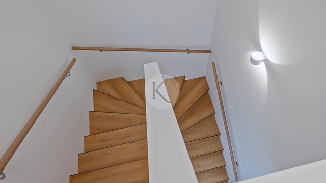 V patře najdete tři ložnice, prostornou koupelnu s vanou a toaletou, technickou místnost.