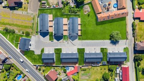 Domy jsou umístěny v neprůjezdné ulici, což vytváří bezpečné prostředí ideální pro rodiny s dětmi.