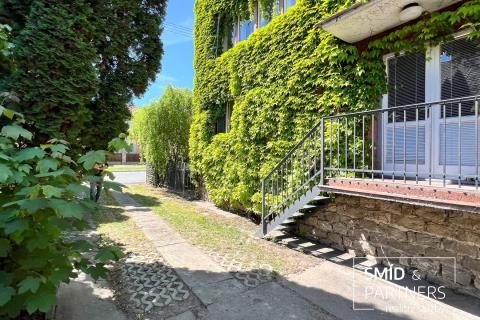 Tento velký rodinný dům se nachází ve velmi klidné městské části Kutné Hory - Sedlec v ulici U nadjezdu. Tato část města se nejvíce rozvíjela od 50. let minulého století a za dobu své existence se stala primárně rezidentní a starousedlickou oblastí. Nabízený dům pochází z výstavby v 60. letech minulého století a prošel řadou stavebních úprav v podobě jeho rozšiřování. Dům je nyní dispozičně řešen jako 6+2 s jednou koupelnou, samostatným WC na ploše cca 127 m2 a bezbariérovým ateliérem se samostatným vstupem o ploše cca 60m2. Hlavní část domu je částečně podsklepená. Sklep tvoří dvě místnosti o celkové ploše cca 23 m2. Obdélníková rovinatá parcela má celkovou plochu 805 m2 a celková zastavěná plocha činí cca 200m2. V zahradě se nachází stavba zděné kolny a letní dřevěný altánek. Stavba byla řešena jako cihlová na kamenném soklu se zvýšeným přízemím a rovnou plechovou střechou s atikou.. Stropní konstrukce jsou zděné, podlahy a schodiště betonové. I přes svoje stáří se jedná o velmi masivní a řemeslně dobře provedenou stavbu. Ačkoli je dům okamžitě možné obývat, tak ke splnění dnešních vyšších nároků na ekonomiku provozu a také komfortu a designu bude ideálním základem pro částečnou rekonstrukci. Rekonstrukce se jistě primárně dotkne výměny původních dřevěných oken a koupelny i toalety, které jsou již na hraně životnosti. Vzhledem k tomu, že dům byl po dekády užíván jako dvougenerační, nachází se v něm v každém patře samostatná kuchyně. Kuchyň ve 2NP je značně novější, cca 13 let stará, kdežto kuchyň v 1NP je ještě původní, pocházející z doby výstavby. Dům tak svým současným pojetím skvěle poslouží pro bydlení velké rodině nebo třeba pro spolubydlení s rodiči. A to i díky přístavbě ateliéru, který má samostatný vchod, je bezbariérový a je napojen na infrastrukturu domu. Přístavba je též případně vhodná pro podnikatelské účely. Ideální by mohla být jako kancelář, ordinace nebo prostor ke krátkodobému či dlouhodobému ubytování. Dům je napojen na všechny sítě a navíc se na pozemku nachází i vlastní studna používaná pro závlahu zahrady. Vytápění je řešeno plynovým kondenzačním kotlem a na střeše domu je instalovaná FVE o výkonu cca 3 MWh/rok. FWE není napojena na baterie a její přebytky jsou dodávány do sítě. Energetická náročnost domu je v kategorii G, nicméně není do ní zahrnuta úspora v podobě FVE. Zahrada je rozdělena na dvě části. Předzahrada a boční části zahrady slouží pro parkování aut, pro přístup do domu a do ateliéru. Část zahrady před domem tvoří příjemný zelený pás oddělující dům od chodníku a silnice. Zadní část zahrady o ploše cca 400 m2 sloužila jako odpočinková. Nachází se na ní množství okrasných keřů a vzrostlých stromů. Svou velikostí je tak zcela ideální pro městské a příměstské bydlení. Ačkoli nemovitost potřebuje investici do vylepšení svého technického stavu a také vzhledu interiéru, jedná se o velmi perspektivní bydlení. Dům poskytuje širokou škálu možného využití a nachází se ve velmi hezké a dopravně skvěle obslužné lokalitě. Neváhejte mne, prosím, kontaktovat a domluvte si prohlídku této skvělé nemovitosti. Jan Česal
