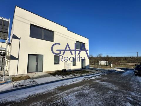 Pokud hledáte nový dům bez starostí s pozemkem a papírováním, nabízíme vám druhý z právě dokončovaných rodinných domů v nové rezidenční lokalitě na ulici Severní v Kyjově, v části Boršov. Tento dům je zrcadlově otočenou variantou prvního krajního domu, který je vyobrazen v přiložené fotogalerii a vizualizaci. Dvoupodlažní dům o dispozici 4+kk s terasou, garáží a zahradou je řešen jako řadový dvojdům s vlastním obvodovým zdivem, dilatační spárou a samostatným vstupem. Plocha domu číní 153 m², pozemek má celkově výměru přibližně 220 m². Stavba je z tvárnic PORFIX šíře 300 mm se zateplením 150 mm silným polystyrenem. O tepelnou a zvukovou pohodu se starají sedmikomorová plastová okna s izolačními trojskly – zvenku v šedé barvě, uvnitř bílé. Vstupní dveře i garážová vrata jsou taktéž plastová. Interiérové dveře jsou navrženy v bílé barvě. Vytápění i ohřev vody zajišťuje tepelné čerpadlo o výkonu 6 kW, s podlahovým topením v každé místnosti a možností regulace. V obytných místnostech budou položeny laminátové podlahy značky Quick-Step. Dešťová voda je svedena do retenční nádrže o objemu 4 m³. Dům bude před prodejem oplocen a budou dokončeny zpevněné přístupy. K dispozici jsou půdorysy i vizualizace interiéru, které pomohou představit si nové bydlení. Vizualizace je pouze ilustrativní. Dům se prodává bez vnitřního zařízení. Vybaveny jsou pouze koupelny. Prezentované informace byly nabyty v dobré víře od vlastníka nemovitosti a naše společnost je zprostředkovává, co by data informačního charakteru, za jejichž správnost a úplnost nenese odpovědnost. RK uvádí energetickou třídu B.