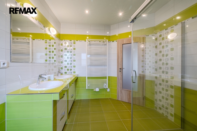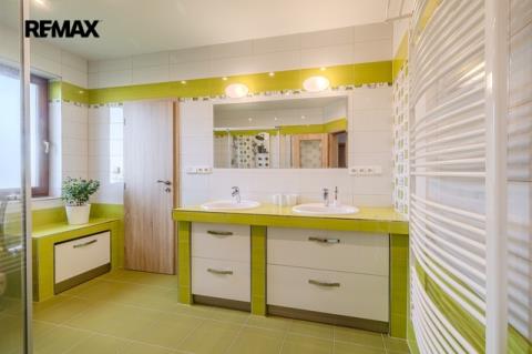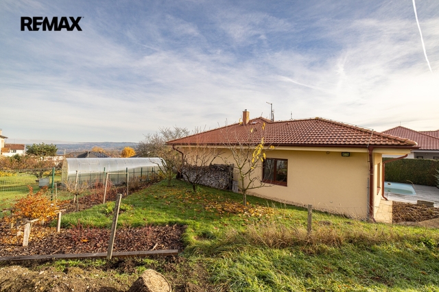 nízké provozní náklady díky tepelnému čerpadlu, vyhřívaný bazén, žulovou terasu, přírodu za domem, klidné místo a chytrou dispozici s dostatkem úložných prostor – včetně dvou šaten.