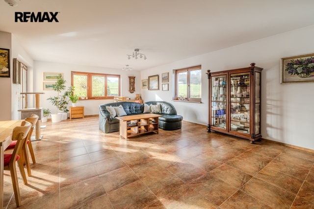 Dům stojí na kraji obce v tiché lokalitě s výhledy do zeleně.