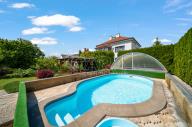 Představuji Vám jedinečnou nemovitost k prodeji, dvougenerační vilu ve stylu první republiky s krásnou a velkou zahradou, bazénem se slanou vodou, garáží a vlastní studnou. Vila je situována v malebném městě Lázně Bělohrad, na klidném místě nedaleko lázní a na dosah přírody.