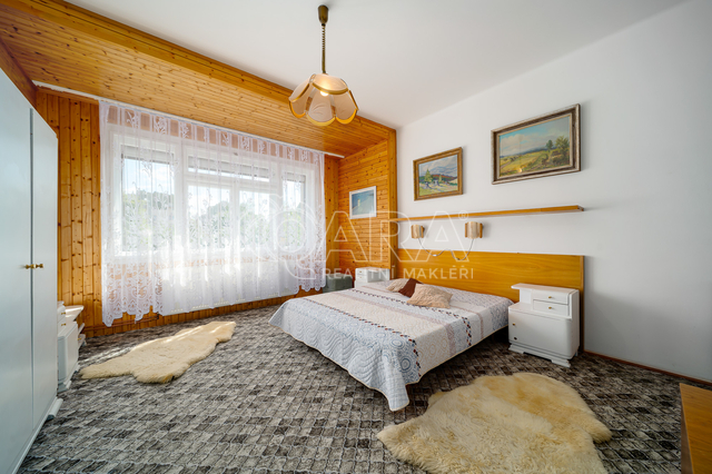o První patro: Byt 3+1 o výměře přibližně 78 m², který byl před cca 25 lety zrekonstruován. Zahrnuje kuchyň, spíž, jídelnu, ob. pokoj s krbovými kamny, ložnici se zaskl. balkonem, komoru a koupelnu s vanou, sprch. koutem a s toaletou.