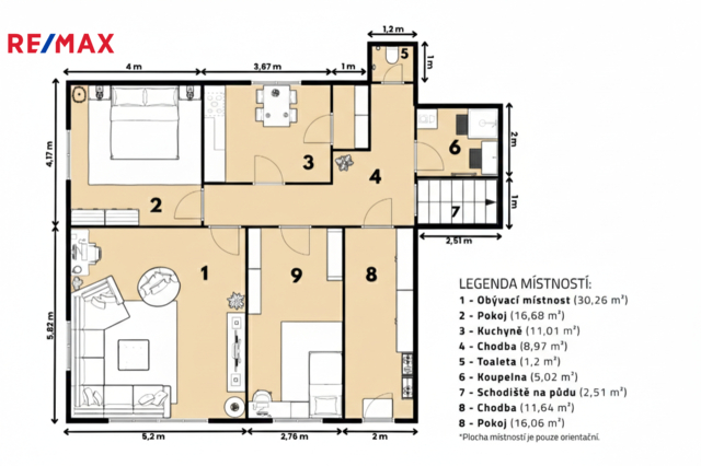 Součástí nemovitosti je také stodola s červenou střechou o 124 m² – perfektní prostor pro dílnu, garáž, ateliér nebo budoucí rekonstrukci. Nad hlavní částí domu se nachází rozsáhlá zdravá půda o ploše 232 m², která nabízí obrovský potenciál pro další rozšíření obytné plochy, loftové bydlení nebo investiční bytové jednotky. Podobně lze rovněž využít zbývající plochu přilehlého velkého pozemku.