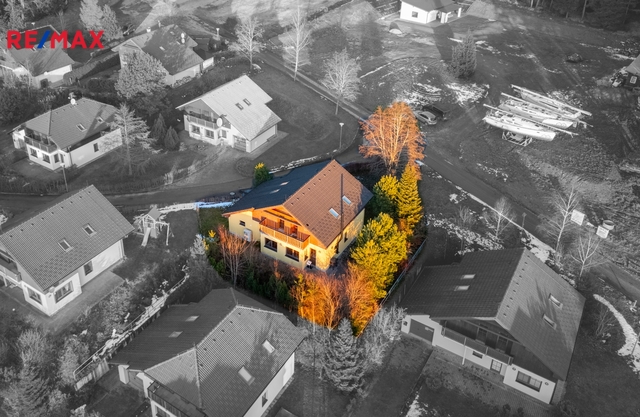 Dům se nachází v lukrativním Villa Parku, v klidné části u lesa, s krásným výhledem na vodní nádrž Lipno, vzdálenou jen 800 m.