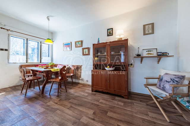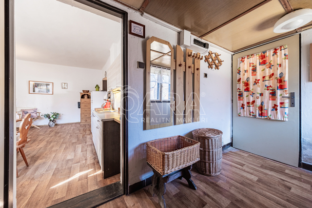 Nemovitost o dispozici 2+kk s půdním prostorem je určena k celkové rekonstrukci, případně nabízí možnost výstavby nového domu na stávající zastavěné ploše. Dispozice zahrnuje velkou ložnici, obývací pokoj spojený s kuchyňským koutem, předsíň a koupelnu se sprchovým koutem a společnou s toaletou. Půdní prostor nabízí možnost vybudování další obytné místnosti, pracovny či skladu dle potřeb nového majitele.