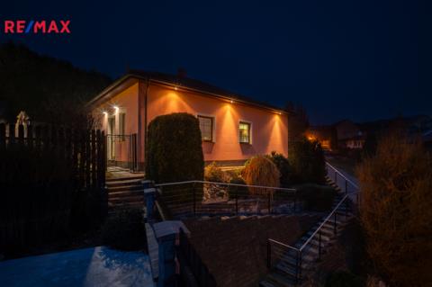 Nabízíme k prodeji přízemní rodinný dům v klidné lokalitě Luka nad Jihlavou, na okraji obce s otevřeným výhledem do okolní krajiny. Jedná se o tiché místo s minimálním provozem a dobrou dostupností do Jihlavy. Dům byl postaven v roce 2006 a má dispozici 4+kk s užitnou plochou 110 m². Hlavní obytný prostor tvoří obývací pokoj s krbem, který je propojený s jídelnou a kuchyní ve tvaru „U“. Krbem lze rovněž vytápět i ostatní místnosti. Z obývací části je přímý kontakt se zahradou. Dále se v domě nachází tři samostatné pokoje (ložnice, dětský pokoj, pracovna), koupelna s vanou i sprchovým koutem, samostatné WC a technická místnost s plynovým kondenzačním kotlem zajišťujícím vytápění i ohřev teplé vody a spíží. Vstupní zádveří nabízí dostatek úložného prostoru. Velkou výhodou je půda připravená k vestavbě podkroví – jsou zde již zavedeny rozvody elektřiny a topení (dále je možné přidat odpad i vodu). Prostor umožňuje vybudování několika obytných místností s velmi pěkným výhledem do okolí, čímž lze dům výrazně rozšířit. Celková plocha pozemku činí 765 m². Zahrada je udržovaná, obklopená zelení a poskytuje dostatek soukromí. Součástí je také terasa nad garáží s otevřeným výhledem do krajiny. K domu náleží samostatně stojící garáž pro dvě auta s dílnou, o celkové zastavěné ploše 60 m² (užitná cca 47m²). Garáž nabízí pohodlné parkování, úložný prostor i zázemí pro hobby či práci. Obec Luka nad Jihlavou nabízí kompletní občanskou vybavenost – školu, školku, obchody, restaurace, zdravotní středisko i vlakové spojení. Do Jihlavy je dojezd cca 10 minut autem.