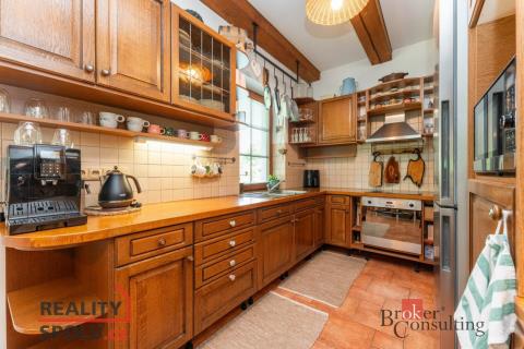 Navazující pozemek parc. č. 538/1 o výměře 2 135 m² není součástí prodeje. V případě zájmu je možné tento pozemek přikoupit; při koupi jako celek by nedocházelo k úpravě hranice pozemku parc. č. 537/1. Pozemek parc. č. 538/1 je dle územního plánu obce označen jako plocha smíšená obytná s možností výstavby rodinného domu. V současné době se na pozemku nachází zahradní dílna. Dům má dispozici 5+kk a užitnou plochu 200,5 m². Přízemí domu se skládá ze zádveří (4,79 m²), chodby (17,68 m²), ze které se dá vstoupit do garáže (16,10 m²) a kotelny (7,16 m²), koupelny (5,60 m²) a oddělené toalety (2,61 m²), ložnice (12,95 m²), následuje kuchyňský kout (6,96 m²), součástí kterého je jídelna (6,53 m²). Dominantou domu je obývací pokoj s krbem (26,14 m²) se vstupem na venkovní terasu. V 1. patře se dále nachází ložnice s šatnou (26,68 m² + 14,53 m²) a výhledem do zelené krajiny. Součástí 1. patra je dále chodba (11,68 m²), pokoj (24,56 m²), koupelna s toaletou (13,62 m²) a dětský pokoj (19,01 m²). Nad obytnou částí se nachází půdní prostor. Vytápění zajišťuje elektrický kotel, případně kotel na tuhá paliva a krb, který je umístěn v obývacím pokoji. V celém přízemí domu a koupelně v 1. patře je podlahové vytápění. Zdroj vody je z vlastní studny a splaškové vody jsou odvedeny do septiku. Rodinný dům se prodává s vybavením dle domluvy se současným majitelem. Okolí domu je ideální pro milovníky přírody a venkovních aktivit. Nemovitost se nachází v krásné krajině Alpského koridoru, 15 km od hranic s Rakouskem, 20 km od Novohradských hor a 30 km od Českého Krumlova. Občanská vybavenost a vše potřebné je v dojezdové vzdálenosti 6 km v obci Kaplice (MŠ, ZŠ, SŠ, zdravotní středisko, obchody, restaurace). Nemovitost je vhodná pro rodinné bydlení, pracující v Rakousku nebo jako obchodní příležitost pro krátkodobý pronájem. K dispozici dle dohody s majitelem. Pro více informací nebo domluvení prohlídky mě neváhejte kontaktovat.
