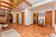 Dům má dispozici 5+kk s celkovou plochou 216,5 m². Přízemí domu se skládá ze zádveří (4,79 m²), chodby (17,68 m²), ze které se dá vstoupit do garáže (16,10 m²) a kotelny (7,16 m²), koupelny (5,60 m²) a oddělené toalety (2,61 m²), ložnice (12,95 m²), následuje kuchyňský kout (6,96 m²), součástí kterého je jídelna (6,53 m²). Dominantou domu je obývací pokoj s krbem (26,14 m²) se vstupem na venkovní terasu.
