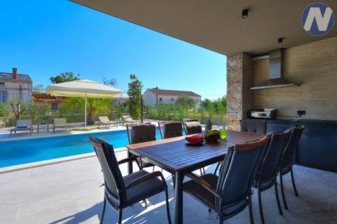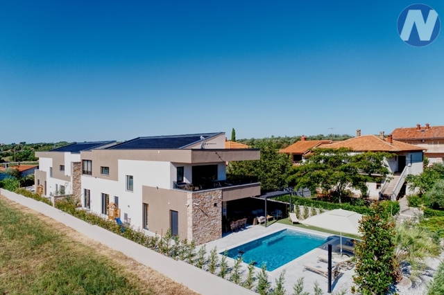 Nově postavená, moderní rodinná vila, která se nachází v klidné vesnici Marčana, ve východní Istrii, jen 4 km od moře a nedotčené přírodní pláže známé svou křišťálově čistou vodou a uvolněnou atmosférou, daleko od masové turistiky.