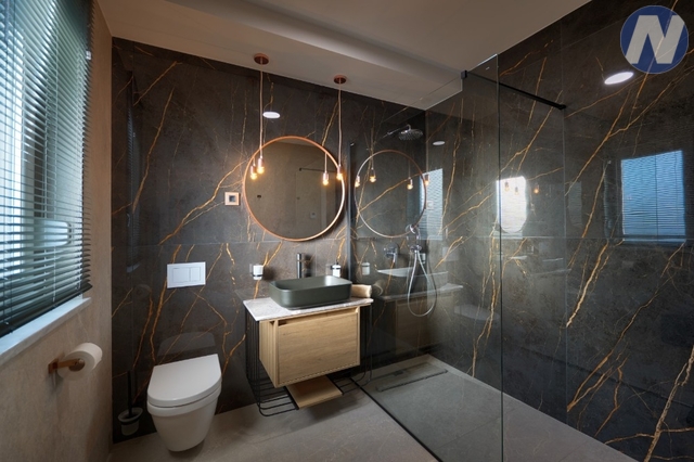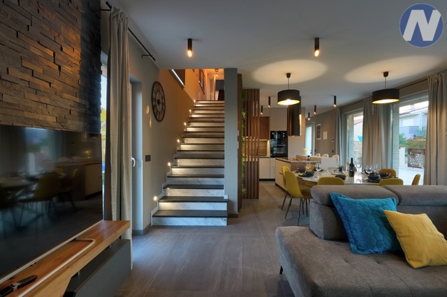 Dům byl postaven v roce 2025, rozkládá se na dvou podlažích a nabízí celkovou obytnou plochu 200 m². Má čtyři prostorné ložnice, čtyři moderní koupelny, otevřenou kuchyň s jídelním a obývacím prostorem, prádelnu a také vlastní wellness centrum se saunou a vířivkou. Nemovitost je plně zařízena kvalitním designovým nábytkem a je připravena k okamžitému použití.