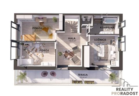 Hledáte perfektní místo pro život? Nabízíme Vám jedinečnou příležitost stát se majitelem prostorného a moderního domu v klidné části obce Medlov, okres Brno-venkov. Tento dvoupodlažní dům 4+kk je ve fázi před dokončením a čeká jen na to, až si ho přizpůsobíte svým představám. Co Vám tento dům nabídne? Dům má zastavěnou plochu 154 m² a užitnou plochu 238 m², což poskytuje dostatek prostoru pro pohodlné bydlení. Pro chvíle relaxace je k dispozici prostorná terasa o rozloze 32 m² a nechybí ani dvojgaráž s plochou 36 m², kam pohodlně zaparkujete dvě auta. Uvnitř najdete vypínače, zásuvky a kompletní elektroinstalaci, která je připravená na podlahové vytápění, klimatizaci, solární panely, fotovoltaiku, tepelné čerpadlo, bezpečnostní systém, elektrické rolety, kamery a internet. V obývacím pokoji je příprava na krb, který zpříjemní chladné večery. Dům je zateplen a je možné jej dokončit dle přání budoucího majitele. Dispozice domu: Přízemí: Obývací pokoj s kuchyní (49,9 m²), pracovna (11,9 m²), chodba (7,8 m²), technická místnost (4 m²), koupelna (3,2 m²), zádveří (8 m²) a dvojgaráž (36,3 m²). 1. patro: Ložnice (19,8 m²), pokoj (17,5 m²), pokoj (20,3 m²), hala (18,9 m²), koupelna (9,4 m²), WC (2,2 m²). Perfektní lokalita Dům se nachází jen 24 minut od Brna a v okolí najdete veškerou občanskou vybavenost – školu, školku, potraviny a další služby. Výborná dostupnost do Židlochovic (10 min), Pohořelic (9 min) a Rajhradu (12 min). Tento dům není jen nemovitost – je to životní styl. Přijďte se přesvědčit na vlastní oči a zažijte atmosféru domova, ve kterém se budete cítit skvěle. Ale pozor! Varování: hrozí riziko zamilování na první pohled! Zavolejte mi ještě dnes a domluvte si prohlídku!