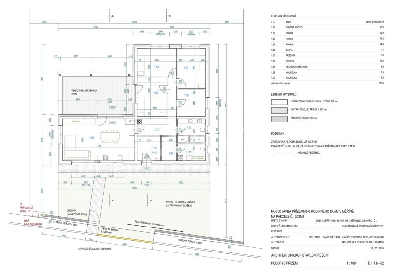 Ve výhradním zastoupení vám zprostředkujeme prodej rodinného domu v Měříně, okrajové části Pustina. Jedná se o cihlovou, právě zkolaudovanou novostavbu o dispozici 5+kk. Celý dům je zateplený polystyrenem a zateplení stropu je zajištěno foukanou izolací. U všech oken je nachystaná kompletní příprava na instalaci venkovních žaluzií. Součástí novostavby je i zastřešená terasa o velikosti 50 m2. Dům je napojen na všechny inženýrské sítě. Podlahové vytápění je zajištěno plynovým kotlem, nachystána je rovněž příprava na tepelné čerpadlo. Je zde také možnost využití komína k instalaci krbových kamen. Na novém majiteli bude pouze dobudování kuchyňské linky, dveří, zárubní a podlah - je možné i toto dokončit prodávajícím dle materiálu vybraného kupujícím. Městys Měřín, který leží mezi Jihlavou (24 km) a Velkým Meziříčím (11 km) nabízí vedle perfektního dopravního spojení veškerou občanskou vybavenost - školka, škola, lékař, obchody. Nájezd na dálnici D1 vzdálen pár minut jízdy. Pro bližší informace volejte makléře.