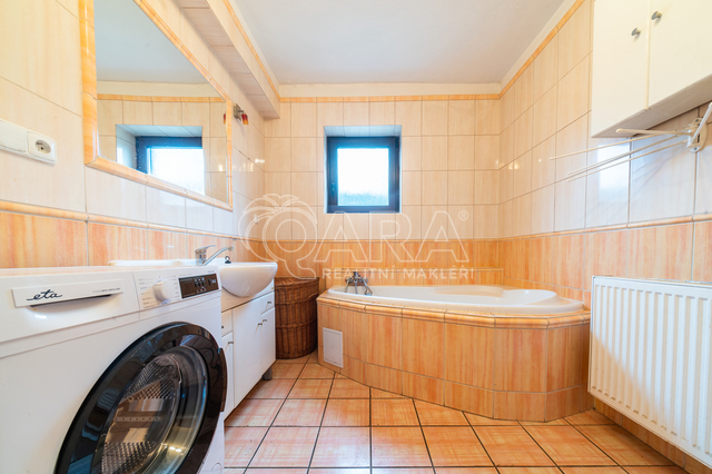 Plastová okna, podlahy keramická dlažba, plovoucí, topení - tepelné čerpadlo, odpady - čistička, voda obecní.