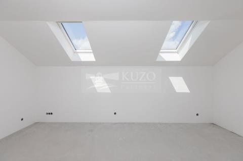 Po schodišti do prvního patra, jsou dva samostatné pokoje o výměře přes 10 m² a ložnice s téměř 20 m², koupelna s vanou a toaletou, dále navíc zmiňovaná prostorná terasa o užitné ploše 29 m².
