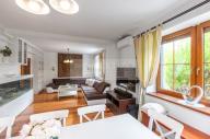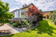 Na prostorný obývací pokoj s kuchyňským koutem plynule navazuje vytápěná zimní zahrada, která nabízí ideální prostor pro odpočinek během celého roku – ať už si užíváte ranní kávu, nebo večerní posezení s výhledem do zahrady.