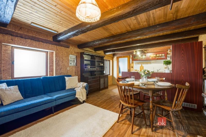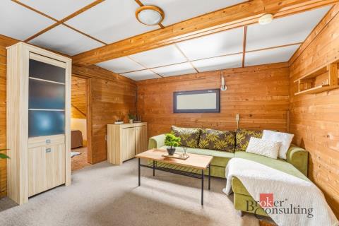V přízemní části rodinného domu se nacházejí dva identické kamenné sklepní prostory s klenbovým stropem a technická místnost, přes kterou se do domu také vchází. Po schodišti se dostanete do prvního patra, kde se nachází první obytná část, a to obývací pokoj s kuchyní, prostornou ložnicí a samostatnou koupelnou a toaletou. Po dalším schodišti vstoupíte do podkroví, kde jsou dva pokoje, z nichž jeden je neprůchozí a druhý aktuálně slouží jako takový druhý obývací pokoj. Přízemí a první patro nabídnou každý cca 51m2, druhé patro pak 22m2. Dále je součástí pozemku dílna a kůlna o celkové velikosti 50m2 a také samostatně stojící dřevěná 18m2 velká garáž.