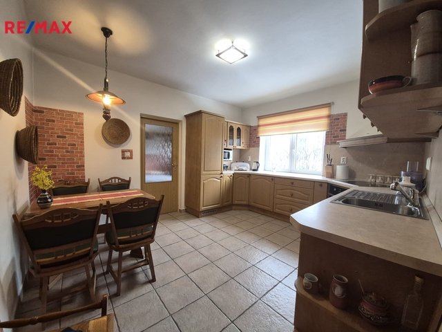 Nabízíme k prodeji rozlehlý zděný objekt v bezprostřední blízkosti centra Mořkova. Nemovitost představuje zajímavou kombinaci bydlení s možností podnikání, částečně podsklepený a nad přízemím se nachází půdní prostor. Na listu vlastnictví je veden jako rodinný dům. Dle územního plánu spadá do zóny VS-VD – plochy výroby a skladování (výroba drobná). V hlavní budově jsou dvě bytové jednotky o dispozicích 2+1 a 2+kk. Byt 2+1 (s možností rozšíření o další místnost na 3+1) prošel v letech 2007–2008 kompletní rekonstrukcí. Byla kompletně vyměněna elektroinstalace a rozvody vody byly provedeny v plastu. Vytápění je zajištěno krbovými kamny v obývacím pokoji kde jsou vstupy na terasu a elektrickými přímotopy. Druhá bytová jednotka 2+kk je po částečné rekonstrukci. Vytápění zajišťují akumulační plynová kamna a byt má vlastní plynoměr. Obě jednotky mají samostatné elektroměry i vlastní bojlery. Součástí objektu je také vedlejší nepodsklepená stavba s přízemím bez podkroví. Nachází se zde dvougaráž a další garáž s vysokými vraty, která umožňuje pohodlné zásobování, skladování či parkování i menšího nákladního automobilu. V objektu je nová světelná i motorová elektroinstalace. K původní budově byl přibližně v roce 1921 přistavěn sál se vstupy a výstupy k hlavní komunikaci a následně také jeviště. Tyto prostory byly dříve využívány jako výrobní, později jako skladovací. K dispozici je rovněž sociální zázemí – dvakrát WC a dvakrát sprcha. V současné době nejsou tyto prostory vytápěny. Pod jevištěm se nacházejí další místnosti vhodné k dalšímu využití. V objektu jsou pravidelně prováděny revize elektroinstalace, komínů i hromosvodů. Za domem, s přístupem z terasy, se nachází menší zahrádka a potůček, které nabízejí příjemné posezení v letních měsících. V případě zájmu o prohlídku, neváhejte kontaktovat makléřku nabídky. Prodávající si vyhrazuje právo vybrat kupujícího na základě jím zvolených kritérií.