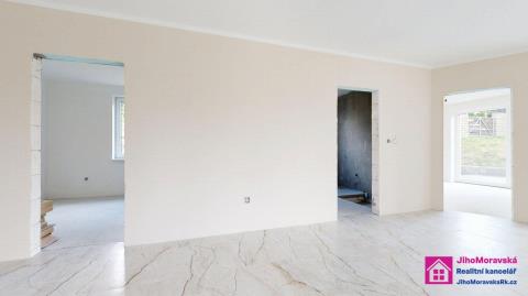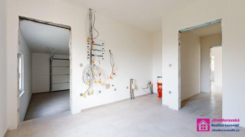 Rádi byste si doladily svůj nový domov podle Vašich představ? Hledáte prostorný dům s velkým pozemkem a s dobrou dostupností do Hustopečí, Klobouk u Brna nebo Hodonína? Ve výhradním zastoupení majitele, Vám zprostředkuji koupi stavby rodinného domu o velikosti 4+kk s dvougaráží, terasou a celkově oploceným pozemkem v menší obci Morkůvky, v okrese Břeclav. Užitná plocha domu 141 m² s podlahovou plochou 230 m². Celková plocha oploceného pozemku s plochou 983 m². Celková zastavěná plocha domu včetně terasy je 273 m². Dispozice domu: dvou garáž, technická místnost, šatna, chodba, toaleta, pokoj, pokoj, koupelna, pokoj, pokoj s kuchyňským koutem a terasa. Půdorys domu naleznete ve fotogalerii. Před nastěhováním je třeba dokončit koupelnu, kuchyň, zárubně, interiérové dveře apodlahy v pokojích. Podepsána smlouva na připojení na kanalizaci. Do Klobouk u Brna dojedete za 5 minut, do Hustopečí za 20 minut, do Hodonína za 25 minut a do Brna za 40 minut. Obec Morkůvky má základní občanskou vybavenost (obecní úřad, obchod s potravinami, dětské hřiště, sportovní areál). Zaujala Vás tato nabídka? Máte zájem pro prohlídku? Vám vyhovující termín prohlídky s kontakty na Vás (e-mail + tel. číslo) zasílejte na e-mail makléře, který Vás následně bude telefonicky kontaktovat.