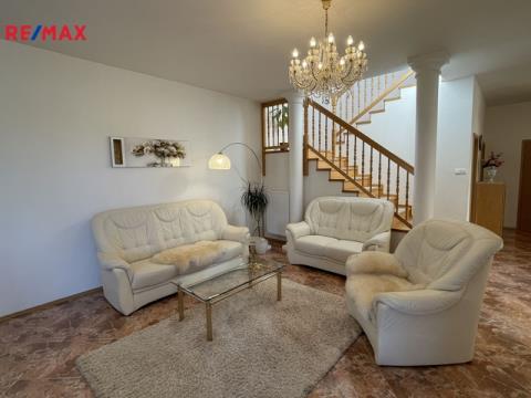 Nabízíme k prodeji prostorný rodinný dům v hezké obci Mukařov Srbín – v blízkosti přírody - lesů Voděradských bučin. Dům z roku 2007 je rodinným domem s potenciálem pro velkou rodinu. Přízemí domu je jako stvořené pro setkávání – opravdu prostorný obývací pokoj s krbem a přímým vstupem na terasu i do kuchyně poskytne dostatek prostoru pro rodinu i návštěvy; Dále se zde nacházejí dvě samostatné ložnice, koupelna a toaleta. Kuchyně je prostorná a plně vybavená všemi spotřebiči, navíc je zde velmi praktická spíž pro uložení všech potřebných věcí. Dalším úložným prostorem je komora pod schody do patra. V prvním patře nalezneme tři velké místnosti, které lze variabilně využít. V jedné z místností je dnes ložnice, další dvě místnosti dnes slouží jako pracovny. V jedné z nich je kompletní příprava na kuchyňskou linku, jsou sem přitaženy všechny potřebné rozvody, proto lze jednoduchým způsobem v patře zřídit samostatný byt např. pro další generaci. Z chodby se vchází do prostorné koupelny s vanou i sprchovým koutem, nalezneme zde i pračku a sušičku. V domě je garáž pro pohodlné zaparkování dvou aut, garáž s elektrickým pohonem vrat je vytápěná, s oknem. Příjezdová cesta do garáže je vydlážděná, lze zde zaparkovat až 4 další auta. U domu je hezká udržovaná zahrada s automatickou závlahou. Vytápění plynovým kotlem, dům má energetickou třídu C – úsporná. Voda je odebírána z vlastní studny, k domu je přivedena voda z místního řadu. Mukařov Srbín je klidná obec s dobrou občanskou vybaveností. Další informace vám rádi poskytneme. Prosím, kontaktujte makléře nabídky.