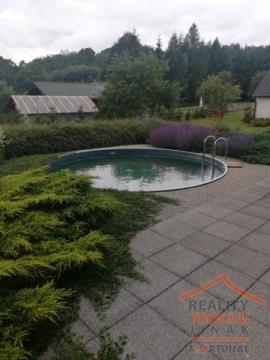 Nabízíme k prodeji rodinný dům 5+kk v malebné obci Podlevín. Tento patrový dům, postavený pouze z kvalitních materiálů a z cihlové konstrukce, disponuje pěti pokoji a kuchyňským koutem, což poskytuje dostatek prostoru pro velkou rodinu nebo pro ty, kteří potřebují několik místností pro práci, relaxaci či koníčky. V nemovitosti dvě moderní koupelny, kde jedna má vanu, druhá sprchový kout. Plastová okna 3 skla; podlahy vinyl. S užitnou plochou 185 m² nabízí kompaktní, ale efektivní dispozici. Vytápění je realizováno elektrokotlem napojeným na podlahové topení, radiátory a dále pak krbová kamna v obýváku. Dům je kolaudovaný v roce 2013. Dům je v perfektním stavu bez známek opotřebení. Prostorné parkování pro 6 vozidel a velmi velká zahrada 3090 m2 s ovocnými stromy. Na zahradě je krytý bazén. Krásný a prostorný dům je situován v okrajové klidné části obce - nachází se v blízkosti lesa na okraji vesnice Podlevín, která je součástí města Nová Paka v okrese Jičín. Dům je velmi dobře zateplen a krbová kamna v obývacím pokoji dokáží vyhřát celý prostor domu. Okna jsou dřevěná, dveře a interiér rovněž dřevo. V přízemí je dlažba, ve druhém podlaží pak plovoucí podlaha, v koupelně v přízemí podlahové topení. V každé místnosti je rovněž el. topení. Dům je napojen na čističku odpadních vod a rovněž má svou vlastní studnu. Byl stavěn jako vícegenerační bydlení a jsou k tomu připravené i veškeré rozvody. Po vstupu do domu se ocitnete v zádveří s vestavěnou skříní a vejdete do předsíně (8,19 m2), která je hlavním komunikačním prostorem. Navazuje na schodiště, které spojuje přízemí s podkrovím. Chodba vede po levé straně do prostorného světlého obývacího pokoje s jídelnou (32,14 m2), na který navazuje kuchyňský kout (6,81 m2) a spíž. V přízemí se rovněž nachází technická místnost (7,54 m2), WC, šatna (5 m2), velká pracovna s kobercem (13,79 m2) a již zmíněná prostorná koupelna (13,30 m2). Po dřevěných schodech se dostaneme do 2.NP, kde jsou tři samostatné pokoje, šatna a sociální zařízení. Z prostoru velké chodby (11,19 m2) v poschodí je přístup do 3 pokojů (17,56 m2, 19,65 m2 a 29,54 m2). Ložnice je spojená se šatnou. Z chodby je přístup také na půdu. Obec Podlevín nabízí dobré dopravní spojení do okresního města Jičín (13km) a nedaleké Nové Paky (2,5km), autobusová zastávka je vzdálená 2,5 km. Veškerá občanská vybavenost se nachází v Nové Pace, sama obec má jen omezenou občanskou vybavenost (sezónní hospoda, plavecký bazén, hala na bruslení a lední hokej, nové hřiště, hasičárna a obecní úřad). V okolí je krásná příroda, sjezdovky jsou v dojezdové vzdálenosti (Jilemnice-13km, Vrchlabí -22km, Nová Paka - Máchova stezka na běžky), 24 km Dvůr Králové/ZOO). Doporučujeme, financování zajistíme.