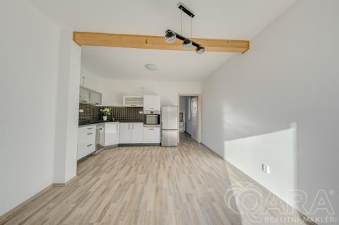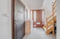 Dispozice: 1. NP - vstupní hala se schodištěm, prostorný obývací pokoj s kuchyňským koutem, spíží, krbovými kamny a vstupem na terasu (41 m2), samostatné WC, technická místnost (elektrokotel, akumulační nádrž na teplou vodu), šatna, a dále zádveří druhého vstupu, pokoj s kuchyňským koutem (15 m2), pokoj (10,2 m2), koupelna se sprchovým koutem a WC.