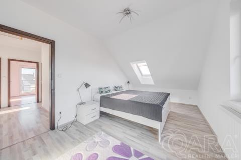 2. NP - hala s přístupem na pochozí půdu, čtyři pokoje (17,3 m2, 15 m2, 15,6 m2, 15,6 m2), z toho dva z nich se vstupem na balkon, rodinná koupelna s vanou, sprchovým koutem a samostatné WC