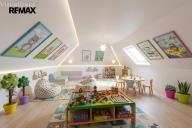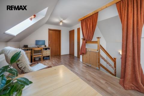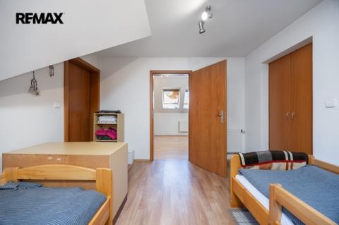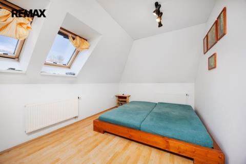 Nabízí hlavní ložnici, dětský pokoj, pracovnu se šatnou/skladem, šatnu, koupelnu s vanou a samostatné WC. Součástí je také půda o výměře 52 m² ve stavu Shell & Core, která nabízí potenciál pro další rozšíření obytné plochy dle vlastních představ.