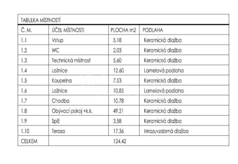 • Celková velikost pozemku 736 m2, vnitřní užitná plocha 107,36 m2 + terasa o velikosti 17,36 m2.