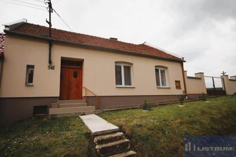Nabízíme k prodeji RD 4+kk s pozemkem o celkové výměře 1.367 m2, na okraji obce, cca. 300 m od centra obce. Dům byl průběžně opravován a částečně rekonstruován. Plastová okna, rozvod ÚT v mědi, elektřina částečně v mědi, dlažby, plovoucí podlahy, atd. Stavba je jednopodlažní, částečně podsklepená, s neobytným podkrovím, přičemž obytná část domu je tvořena obývacím pokojem s kuchyňským koutem a jídelnou, 3 x ložnicí, koupelnou a WC, zádveřím, komorou, technickou místností a vstupem na zahradu. V komoře je připravena kanalizační roura pro případné vybudování další koupelny a WC. V podkroví možno vybudovat další obytné prostory. Za tím účelem již v minulosti byla vyhotovena projektová dokumentace. Vytápění je řešeno kondenzačním plynovým kotlem napojeným na ústřední topení, ohřev TUV plynovým průtokovým ohřívačem. Voda z vodovodního řadu. Odpad pravděpodobně nebo ne zcela není napojen na kanalizační řad, který vede v ulici podél stavby domu. Vyústění kanalizační přípojky před domem vybudováno. Pozemek je oplocený. Příjezd k domu zajištěn po asfaltové obecní cestě. Celková obytná plocha cca. 102 m2, celková užitná plocha cca. 212 m2. Zastavěná plocha domu 158 m2. Na nemovitosti neváznou žádné právní vady. Velkým pozitivem je umístění domu na konci ulice, s výhledem do okolí, ve velmi klidné části, ale přesto blízko centra obce. Vynikající dopravní dostupnost do Prostějova (6 km na kruhový objezd u OMV), Olomouce (22 km k OC Haná), 9 km na dálnici. Zastávka BUS 300 m. PENB zatím nebyl majitelem dodán, proto uvádíme hodnotu G.
