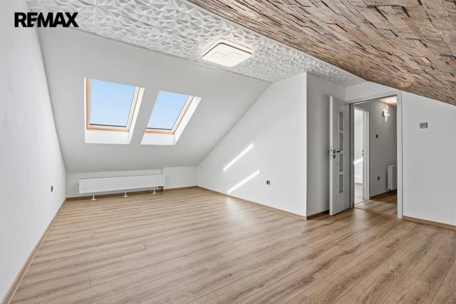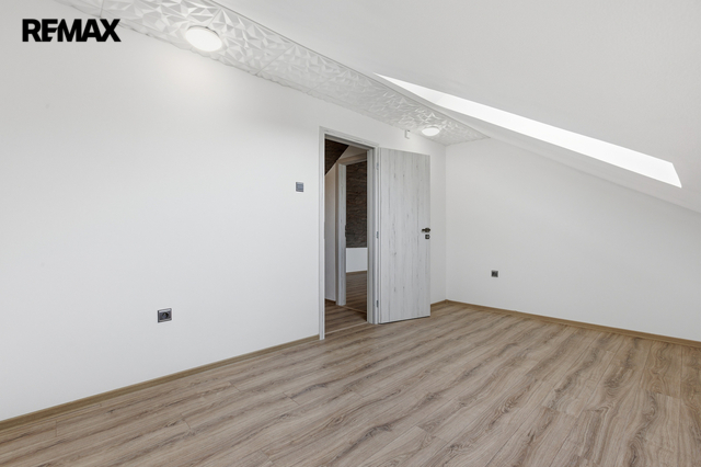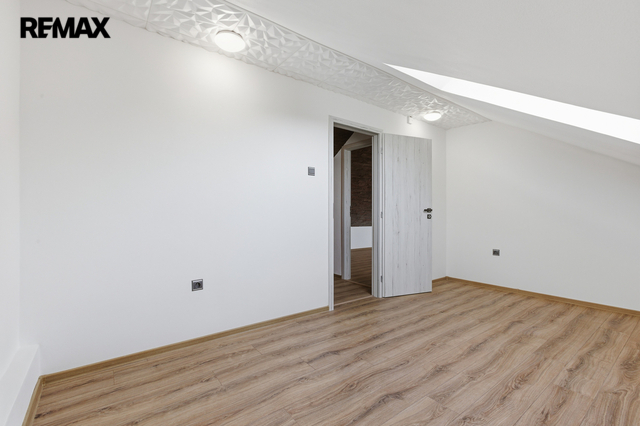 Nabízím k prodeji rodinný dům 3+kk o celkové užitné ploše 96 m² se zahradou o výměře 129 m² v obci Brník, část Oleška. Dům se nachází uprostřed tří sousedních domů v řadové zástavbě. Celý objekt prošel kompletní rekonstrukcí a kolaudace proběhla koncem roku 2024. V přízemí je prostorný obývací pokoj s kuchyňským koutem o ploše 26,80 m². Součástí prodeje je rozkládací rohová sedačka a kuchyňská linka v červeném provedení – bez spotřebičů. Dále se zde nachází chodba o velikosti 16,33 m² a koupelna se sprchovým koutem a WC (4,19 m²), vybavená velkoformátovou dlažbou v elegantním designu. V patře je chodba (5,43 m²), ložnice (15,58 m²) a prostorný pokoj (23,57 m²). Podlaží propojuje točité schodiště. Podlahy jsou laminátové, v chodbě a kuchyni je dlažba. Vytápění zajišťuje elektrický kotel se zásobníkem na teplou vodu o objemu 80 litrů. Dům je vybaven okny Velux s trojskly (140 × 90 cm), bezpečnostními vstupními dveřmi, samostatným měřením elektřiny a vody a jímkou o objemu 9 m³. Jedna z vnitřních stěn je obložena přírodním kamenem, který interiéru dodává příjemný, moderní vzhled. Parkování je možné před domem nebo přímo na zahradě. Obec Brník (součást Olešky) je klidná a oblíbená lokalita obklopená přírodou, vzdálená přibližně 30 minut jízdy od Prahy a asi 10 minut od Říčan. V místě je základní škola (otevření v září 2025), mateřská škola, obchod se smíšeným zbožím a autobusová zastávka s přímým spojením do Prahy i Říčan. V okolí jsou lesy, cyklostezky i možnosti pro volnočasové aktivity. Pokud hledáte moderní a útulné bydlení v tichém prostředí s dobrou dostupností do Prahy a vlastním kouskem zahrady, tenhle dům vás zaujme. V případě zájmu si můžete objednat prohlídku a kontaktovat mě pro více informací. Prodávající si vyhrazuje právo vybrat kupujícího na základě jím zvolených kritérií.