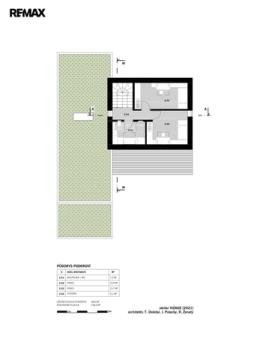 Jednopodlažní dům s obytným podkrovím o celkové užitné ploše 134,4 m² a dispozicí 5+kk je situovaný na rovinatém terénu. Dům se prodává postavený "na klíč". To zahrnuje základovou desku, hydroizolaci a tepelnou izolaci, stavbu z keramických pálených cihel o minimální tloušťce zdiva 440 mm včetně překladů a věnce, kompletní zastřešení pálenou keramickou taškou, klempířské prvky, hliníkové okenní rámy s trojsklem, dále oplocení, pergolu, finální fasádu, bílou omítkovinu a kompletní dřevěné prvky. Pro další informace ohledně standardů kontaktujte makléře nabídky. Vnitřní uspořádání je navrženo tak, aby charakter navrženého domu maximalizoval možnosti využití celého pozemku.