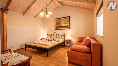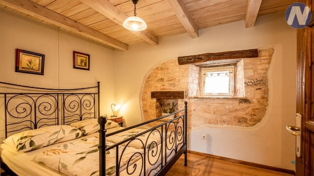 Tento unikátní objekt se skládá ze dvou samostatných budov, autentických kamenných domů, které byly kompletně zrekonstruovány a vybaveny velkým důrazem na detail. Každý dům má vlastní vchod, zatímco mají společný prostorný a dobře navržený venkovní prostor. Najdete zde bazén s moderní solární sprchou, prostor pro opalování, idylická místa pro posezení a socializaci a krytou terasu s grilem až pro 12 osob, ideální pro letní posezení. Vstup do dvora zdobí olivovníky a na pozemku je zabezpečené soukromé parkoviště pro 4 auta.