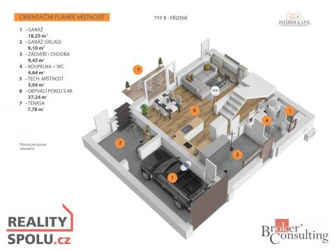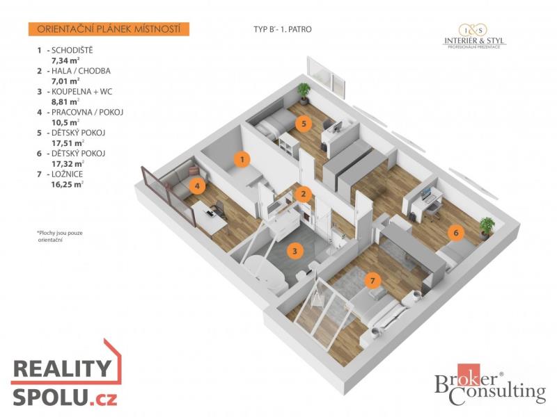 ENGLISH BELOW ZKOLAUDOVÁNO S radostí Vám představujeme domy typu B v exkluzivním projektu řadových rodinných domů v Ořechu u Prahy. Projekt Kalinova zahrada (web kalinovazahrada) představuje velkorysé moderní rodinné domy na prahu metropole. Komfortní bydlení v oáze klidu a zároveň s výborně dostupným centrem Prahy může být jasnou volbou pro váš rodinný život i lukrativní investiční příležitost. V osobitém pojetí kombinuje komplex Kalinova zahrada klasiku s moderním designem. Ve třech liniích 5, 6 a 7 řadových domů se zrodila nová, příjemně a harmonicky působící čtvrť s celkem 18 dvoupodlažními rodinnými domy. Nabídka více typů rodinných domů Kalinova zahrada díky různým dispozicím vyhoví rozmanitým požadavkům svých klientů. Prostorné bydlení s dispozicemi 3+kk, 4+kk, 5+kk či 6+kk a celkovou plochou od 147 m2 do 170 m2 je i díky výborné občanské vybavenosti a dostupnosti metropole mimořádně atraktivním zejména pro rodiny s dětmi či partnerské dvojice s nároky na vyšší životní standard. Projekt Kalinova zahrada odhaluje významný potenciál obce Ořech u Prahy. Na jihozápadním okraji české metropole se z malebné vsi s dávnou historií rodí atraktivní, vyhledávaná lokalita s vkusně vyhlížející rodinnou zástavbou plnou života i společenského dění a zároveň s bezkonkurenční občanskou vybaveností hlavního města Prahy nadosah. Těšíme se na setkání s Vámi při osobní schůzce nebo prohlídce nemovitosti. ENGLISH We are pleased to present type B houses in an exclusive project of terraced houses in Ořech u Prahy. The Kalinova zahrada project (web kalinovazahrada) presents generous modern family homes on the doorstep of the metropolis. Comfortable living in an oasis of calm and at the same time with excellent access to the center of Prague can be a clear choice for your family life as well as a lucrative investment opportunity. In a unique concept, the Kalinova zahrada complex combines classics with modern design. A new, pleasant and harmonious district with a total of 18 two-story family houses were born in three lines of 5, 6 and 7 terraced houses. Kalinova zahradas offer of several types of two-story family houses, thanks to its various layouts, meets the diverse requirements of its clients. Spacious housing with layouts of 3+kk, 4+kk, 5+kk or 6+kk and a total area from 147 m2 to 170 m2 is extremely attractive, especially for families with children or couples with demands for a higher standard of living, thanks to the excellent civic amenities and accessibility of the metropolis. The Kalinova zahrada project reveals the significant potential of the village of Ořech u Prahy. On the south-western edge of the Czech capital, a picturesque village with a long history has given birth to an attractive, sought-after locality with a tasteful-looking family building full of life and social events, and at the same time with the unrivaled civic amenities of the capital city of Prague within easy reach.