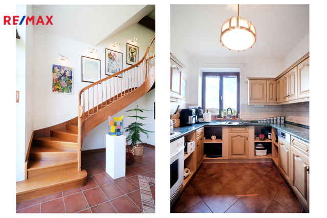 Dům dle návrhu renomovaného architekta Filandra je perfektním příkladem situace, kdy je svažitost pozemku pojata jako příležitost a také skvěle využita. Nestandardní pojetí i uspořádání vnitřního prostoru, kde jednotlivé části domu jsou logicky propojeny. Všechno je přiměřené, útulné a funkční. Nemovitost se nachází v tiché ulici, využívané převážně rezidenty. To zaručuje klid a soukromí, to vše ještě umocněno nádherným výhledem do zeleně na horizontu..