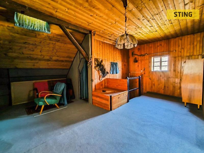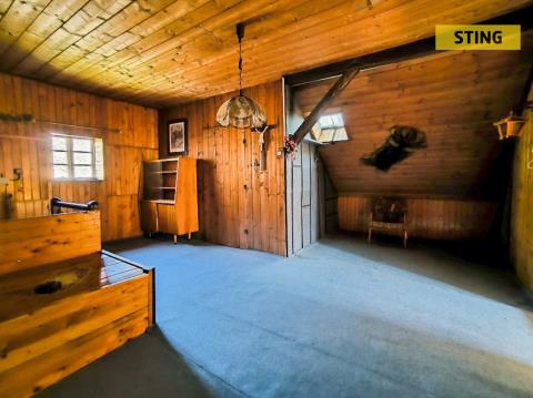 Ve 2. NP, do kterého se dostaneme dřevěnými schody vedoucími z předsíně, se nachází jeden prostorný pokoj a podkroví, ve kterém je možné dobudovat další pokoj.