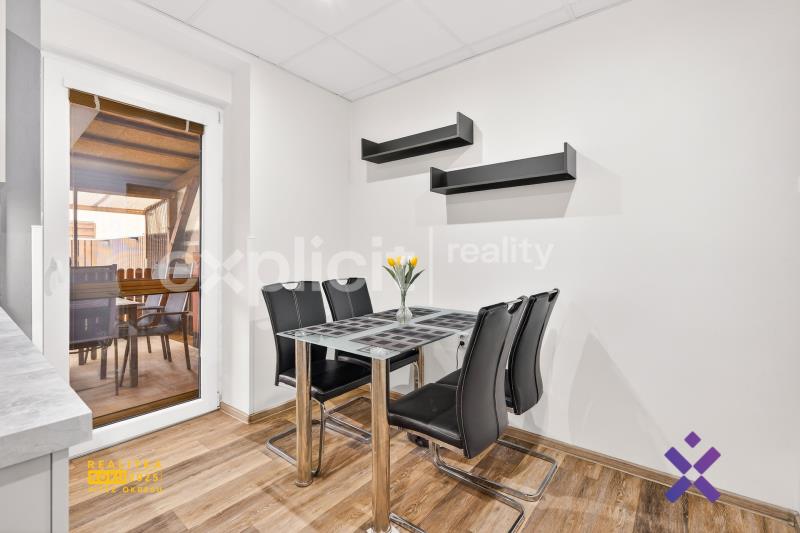V přízemí se nachází samostatná kuchyně s jídelním koutem, která poskytuje dostatek místa pro vaření i rodinné stolování. Z kuchyně je přímý vstup na schodiště do 2. nadzemního podlaží i na zastřešenou terasu a zahradu, což oceníte zejména při posezení s přáteli nebo letním grilování. Obývací pokoj je světlý a nabízí dostatek prostoru pro odpočinkovou zónu i rodinné setkávání. Součástí přízemí je dále koupelna vybavená vanou i sprchovým koutem a samostatné WC, což zajišťuje komfortní každodenní fungování domácnosti.