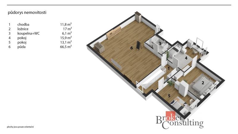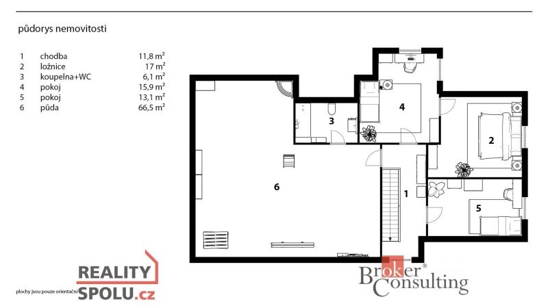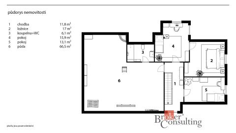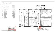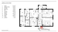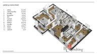 Dům je dvoupodlažní, částečně podsklepený a nabízí velmi praktickou dispozici. V přízemí se nachází vstupní zádveří, chodba, samostatný pokoj, prostorný obývací pokoj, kuchyně s jídelním koutem, koupelna, samostatné WC a komora. V patře jsou umístěny tři další pokoje, ložnice, koupelna s WC a chodba. Velkou přidanou hodnotou je půda o výměře cca 66 m², která je vhodná k vestavbě dalších obytných místností.