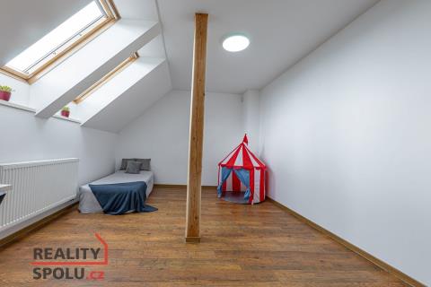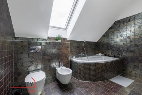 3. podlaží (ložnicové) nabízí tři samostatné a velmi prostorné pokoje, včetně hlavní ložnice o velikosti přes 21 m², a třetí, největší koupelnu vybavenou rohovou vanou, umyvadlem, WC a bidetem. Z oken této části je krásný výhled do okolní zeleně. Součástí domu je také velkorysý půdní prostor, který lze využít nejen jako úložné zázemí, ale nabízí i možnost budoucího rozšíření – například o ateliér, domácí pracovnu nebo další obytnou místnost.