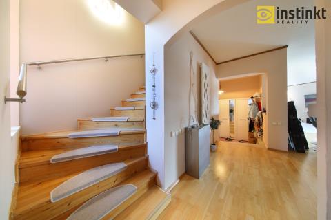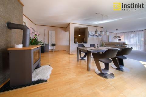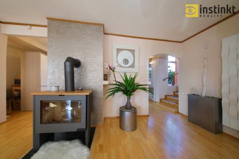 Nabízíme k prodeji rodinný dům o zastavěné ploše 132m2 s vlastním pozemkem, v Plzni Újezdě v ulici Národní. Dům byl postaven v roce 1995 a v roce 2023 proběhla vkusná rekonstrukce (interiér domu, moderní otopná tělesa, kuchyně, plynový kotel). Dům o dispozici 5+1 má dvě nadzemní a jedno podzemní podlaží. V 1.NP se nachází obývací pokoj, kuchyně, šatna, WC a terasa na jižní stranu. V 2.NP se nachází čtyři pokoje, koupelna a šatna. Dvě ložnice mají společný balkon, další pokoj má svůj menší balkon na jižní stranu. V 1.PP se nachází garáž pro dvě auta, prádelna a sklepní prostory. Na pozemku za domem je bazén se slanou vodou (technické zázemí v domě) a k posezení krytý altán. Na střeše domu je Bonský šindel se zárukou 90let. IS: el. 230/400V, obecní vodovod, obecní kanalizace, topení ústřední plynové + krbová kamna. Dům se nachází v blízkosti zastávek MHD s dobrou dostupností do centra Plzně. Doporučujeme osobní prohlídku!