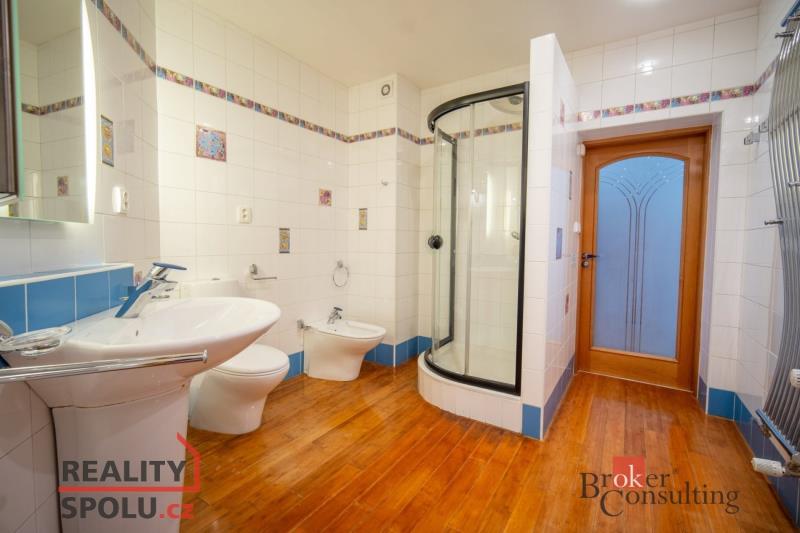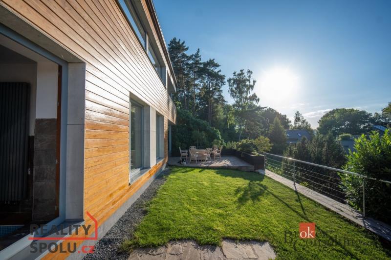 Je na krásném místě, obklopena zelení, na kopci s úžasným výhledem a přitom nedaleko centra města. Tato vila vás ohromí. Nachází se na Praze 5 ve vilové čtvrti, která je mnohým utajena. Máte tu tak klid a soukromí, které si zasloužíte. Další výhodou domu jsou velkorysé prostory a třeba vnitřní bazén. Dům má podlahovou plochu téměř 200m2 a k tomu 2 garáže. Stojí na svažitém, upraveném pozemku (723 m²) se vzrostlými stromy a na konci slepé ulice Za Mototechnou. Díky tomu, že dům stojí v horní části pozemku (nad garáží), máte úžasné výhledy jak z přízemí, kde je velká terasa a část zahrady, tak samozřejmě i v prvním patře domu. V přízemí domu se nachází velký obývací pokoj s kuchyní, koupelnou a vstupem do další části domu kde je vnitřní bazén a infrasauna. Tato část domu má 100 m2. Ve druhém patře je atrium, vstup do třech pokojů, na terasu a do koupelny. Hlavní ložnice má samostatný vstup do koupelny. Podlahy jsou dřevěné a v pokojích vestavěné skříně. Úžasné je prosklení, které je po celé délce severozápadní stěny s výhledem na část Prahy 5 a dále – Motol, Ladronku až po Břevnov. Ulice Za Mototechnou navazuje na Motolsko-Košířský park – jeden z nejhezčích přírodních parků v Praze, kde je i hřiště Golf Club Praha. Skvělé napojení na rozvadovskou spojku, tedy D5 na Plzeň. Pěšky jste kousek od Plzeňské - dobré spojení s centrem na Andělu jste autem za 15 minut / MHD 29 minut. Podobných nemovitostí je Praze jen pár, přijďte se sami přesvědčit. Honza Chundela