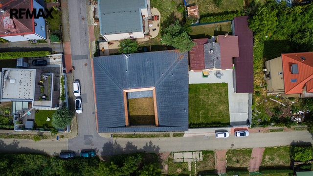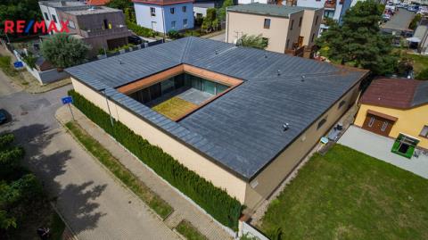 Stavba z roku 2012 (s natočeným průběhem celé stavby) nabízí přes 360 m2 užitné plochy a vnitřním zatravněným atriem téměř 130 m2.