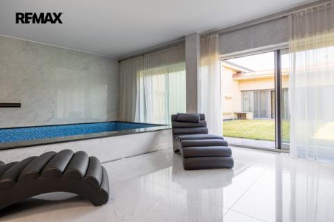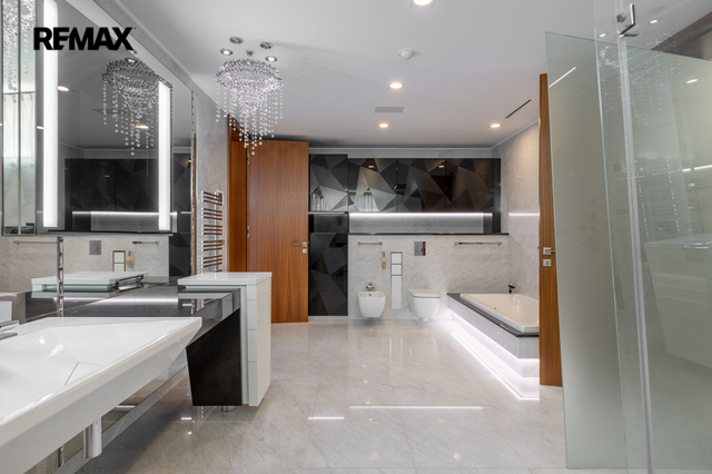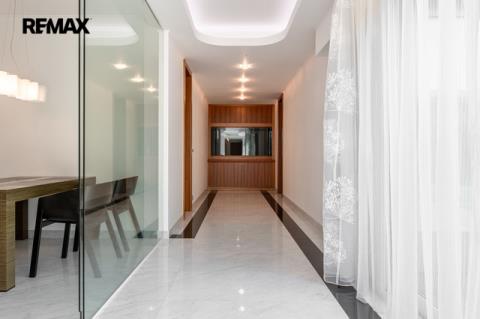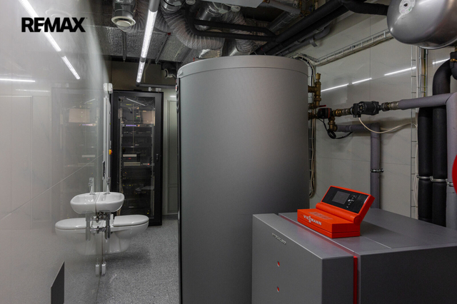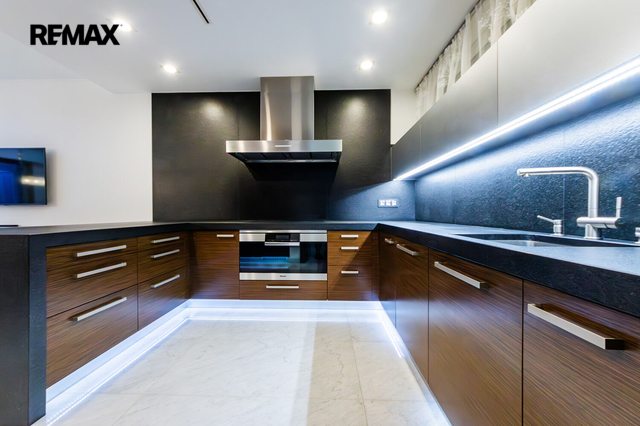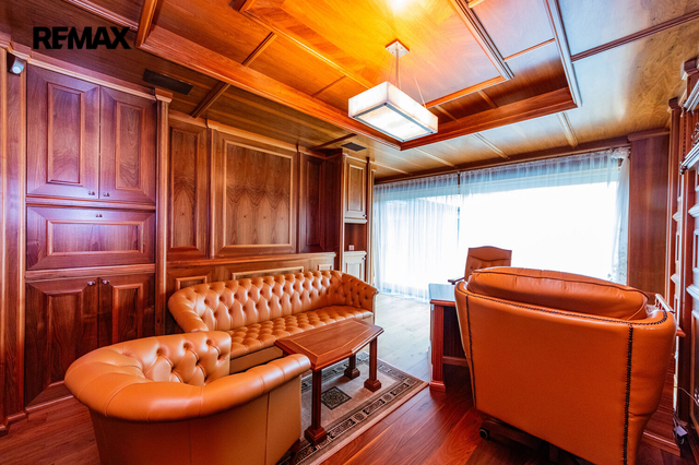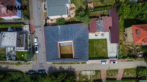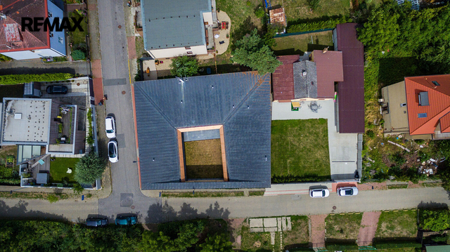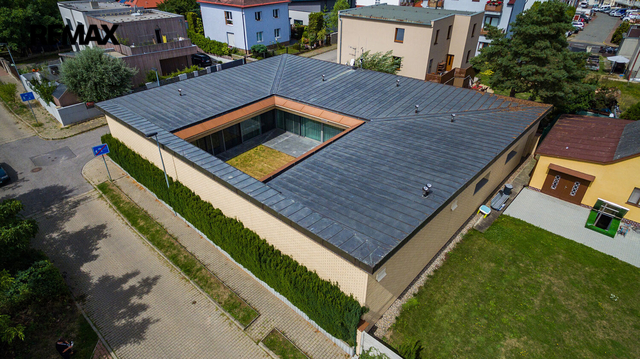 Dovoluji si Vám nabídnout prodej prostorného atypického rodinného domu na adrese Rotenská 540, Praha 9 - Kyje. Stavba z roku 2012 (s natočeným průběhem celé stavby) nabízí přes 360 m2 užitné plochy a vnitřním zatravněným atriem téměř 130 m2. Důmyslně promyšlené provedení a použití kvalitních materiálů nabízí mimořádný pocit bydlení. Interiér byl kompletně vyroben na zakázku a je vybaven moderními technologiemi – chytrá domácnost Crestron, centrální lux HUSKY, kamerový systém uvnitř atria včetně laserových závor kolem domu. Elektrické zámky + v každé místnosti, mimo garáže a šatny, jsou nainstalované TV. Bezpečnostní rolety, bezpečnostní ocelové vstupní dveře okna s trojsky a rámy Schüco. Kuchyňská linka, vybavena spotřebiči zn. Miele včetně elektricky výsuvných šuplíků, navazuje na obytný prostor, ve kterém je obývací stěna na dálkové ovládání, mramorový elektrický krb, který hřeje i praská. Dominantou ložnice je hvězdné nebe z optických vláken + koupelna Swarovski. Ve wellness části je bazén s tryskami a masážním vodopádem, sauna s dvojsystémem (pára a suchá), muzikoterapie, bar s lednicí (možnost nasvícení čtyřmi barvami). Podlahy, s podlahovým vytápěním, téměř v celém domě jsou z italského mramoru, v pracovně a navazující druhé kuchyni jsou podlahy dřevěné (ořech), v garážích a terase v atriu žulové. V atriu je venkovní kino a zavlažování trávníku je zajištěno kapilárními tryskami. Parkování je zajištěno ve dvou garážích, v nichž jedné z nich jsou vybudované odtoky vody pro mytí auta. Čerstvý vzduch zajišťuje rozvedená rekuperace s chladící jednotkou, topení kotlem Viessmann zajišťují 3 stometrové vrty tepelného čerpadla pro dům i pro bazén. Tento dům vyniká svou unikátností a luxusním charakterem, které osloví i ty nejnáročnější kupující. Pokud hledáte nemovitost, která splní všechna vaše očekávání a bude vám poskytovat jedinečný pocit exkluzivity a 100% soukromí, nemusíte hledat dál. Tato nemovitost je tím pravým místem pro váš životní styl. V případě zájmu o prohlídku nás neváhejte kontaktovat. Těším se na setkání s vámi a možnost vám představit tuto unikátní nemovitost osobně. Prodávající si vyhrazuje právo vybrat kupujícího na základě jím zvolených kritérií.