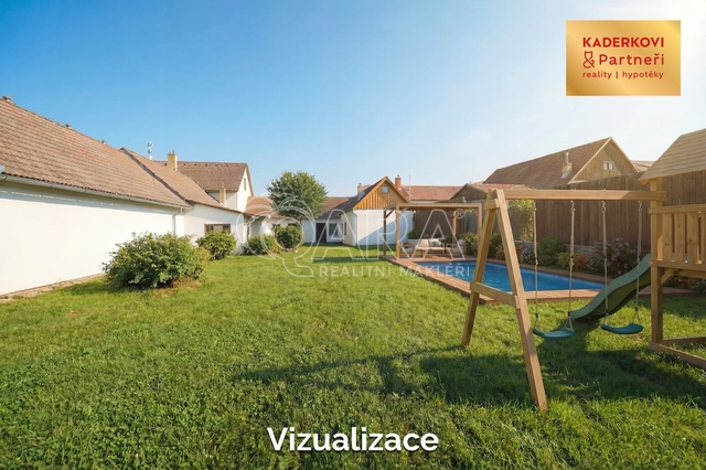 Klidné bydlení s velkou zahradou a dalším pozemkem Mezi Telčí a Třebíčí v obci Předín nabízíme ke koupi jednopodlažní rodinný dům 3+1 se zahradou za domem a další zahradou v obci – ideální kombinaci klidného bydlení a prostoru pro vlastní realizaci. Dům je řešen jako 3+1 a jeho velkou předností jsou prostorné obytné místnosti, které dnes nebývají samozřejmostí. Pokoje mají výměry přibližně 20 m², 19,3 m² a 19,6 m². Součástí domu je také prostorná vstupní hala o výměře cca 23,6 m², která může sloužit také jako místo k setkávání nebo nabídnout nadstandardní úložné možnosti. Objekt je částečně podsklepený – sklep má výměru přibližně 10 m² a poskytuje další praktické zázemí. Uvedené výměry jsou pouze orientační. K domu náleží také další prostory vhodné například pro dílnu, sklad nebo hobby místnost, což výrazně rozšiřuje možnosti využití celé nemovitosti. Vytápění je řešeno zánovním plynovým kotlem. Dvě zahrady s celkovou plochou 1 160 m² Za domem se rozprostírá hlavní zahrada o výměře cca 405 m² s příjezdem ze zadní strany pozemku, která umožňuje vytvořit si skutečné rodinné zázemí – od bazénu a pergoly přes parkování pro více aut až po dětské hřiště nebo klidnou relaxační zónu. Pro inspiraci, jak by to tady mohlo vypadat, se můžete podívat na přiložené vizualizace. Druhá zahrada se nachází také v obci a má výměru 457 m². Tuto zahradu je možné využít například jako ovocný sad nebo pěstební zahradu. V obci Předín najdeme například mateřskou i základní školu, poštu, potraviny a zázemí pro volný čas, např. víceúčelové hřiště a kulturní dům. Obec Předín nabízí klidné bydlení mezi městy Telč a Třebíč, což zajišťuje dobrou dostupnost služeb i pracovních příležitostí.